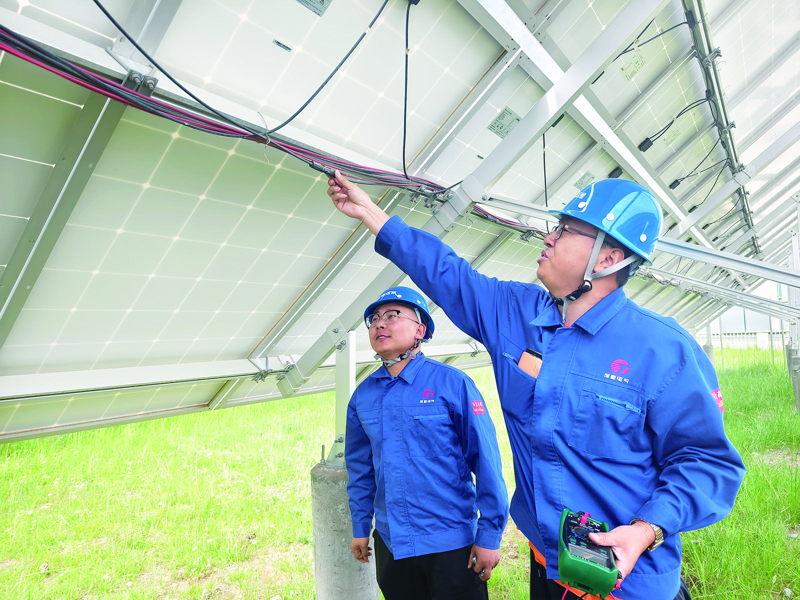 作為(wei) 技術人員,劉光耀和王海新每個(ge) 月要過來兩(liang) 三次,檢查變壓器、逆變器、通訊櫃等設備是否正常運行,電壓電流是否正常,以保證發電站正常運行發電。
