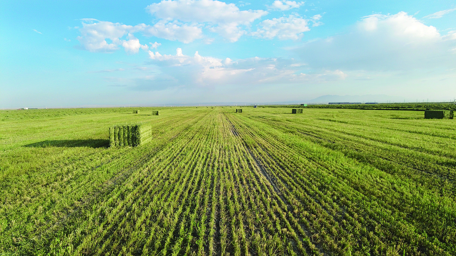 昔日“農(nong) 業(ye) 荒漠”變身“生態糧倉(cang) ”。奔盛草業(ye) 供圖