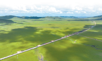 若爾蓋濕地每年對黃河流域補水量占黃河全流域水量的8%,在這裏建設鐵路,從(cong) 設計到施工,都得小心翼翼。