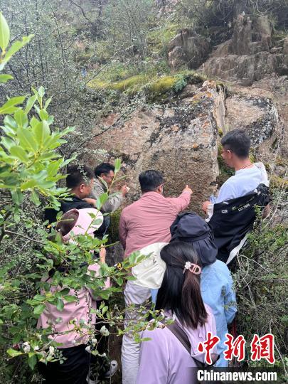 圖為(wei) 科研調查隊解讀崖壁上的題記。葉拉太 供圖