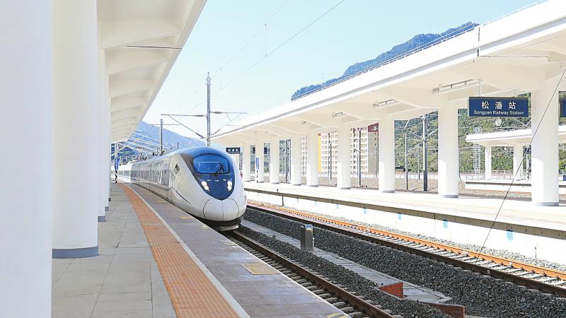 運行試驗車駛進鬆潘站。中國鐵路成都局集團公司供圖