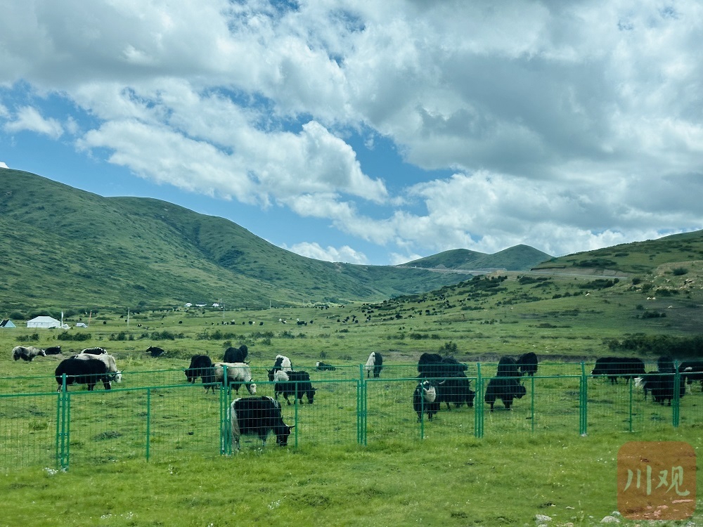 藍天白雲(yun) 下,綠蔭草場上,成群的犛牛像“黑珍珠”一般點綴在“綠色”海洋裏。記者一行來到了“犛牛之鄉(xiang) ”紅原縣,這裏是阿壩州唯一的純畜牧業(ye) 縣。紅原縣現有天然草原麵積755.88萬(wan) 畝(mu) ,畜牧業(ye) 為(wei) 當地百姓帶來收益的同時,也對生態環境保護提出了挑戰。