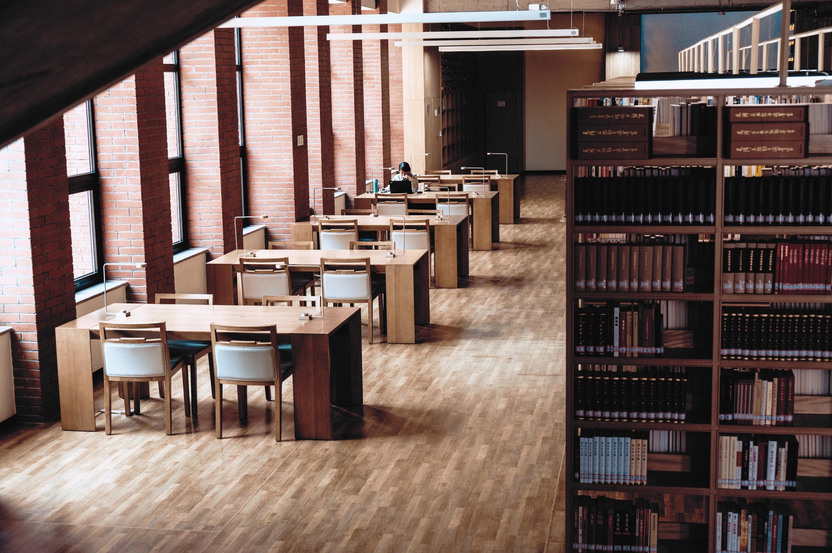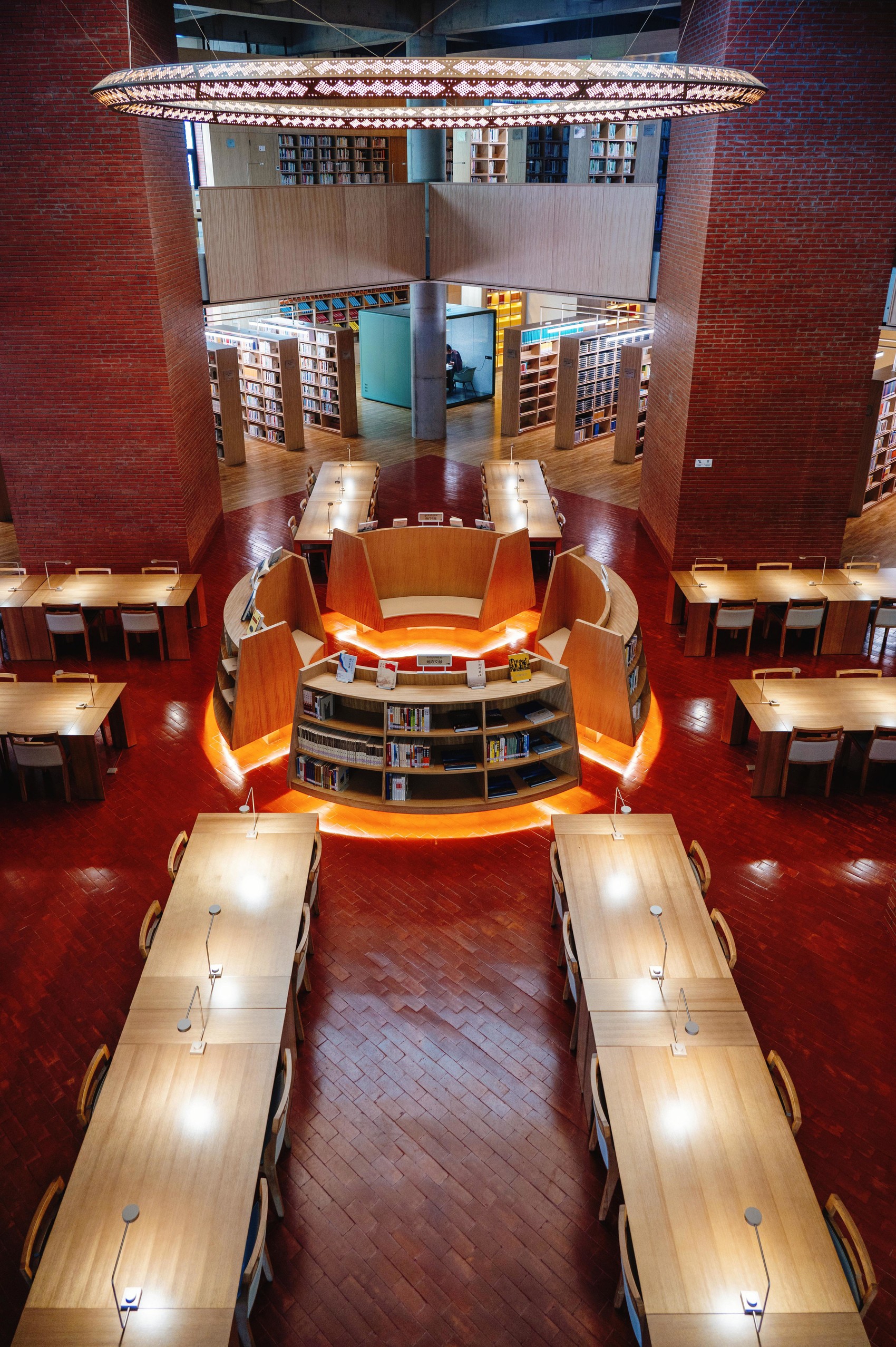 圖書(shu) 館中閱讀區和書(shu) 架。