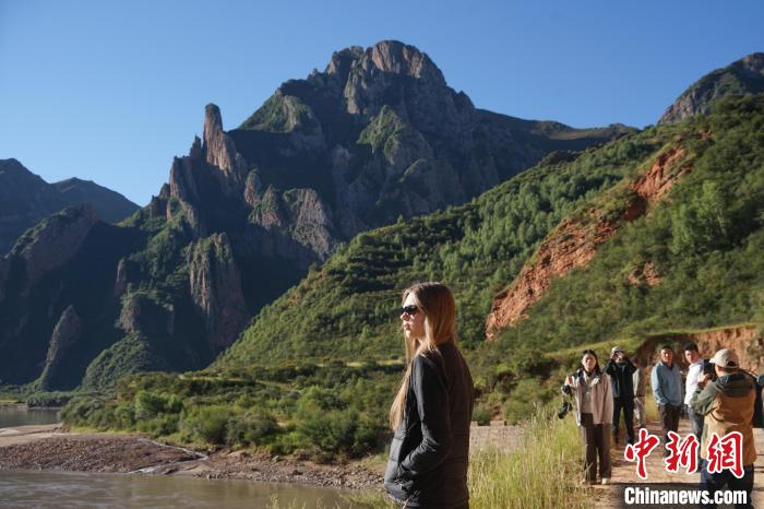 圖為(wei) 中外文旅達人在瀾滄江上遊的河穀中拍照打卡。馬銘言 攝