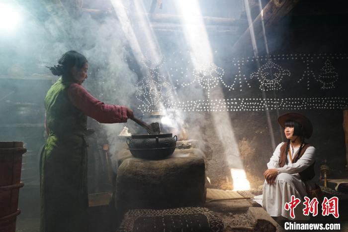 在囊謙縣娘拉鄉(xiang) 的藏式古堡內(nei) ,旅遊達人們(men) 走進擁有百餘(yu) 年曆史的藏族人家,與(yu) 女主人一起體(ti) 驗生火、熬煮奶茶。