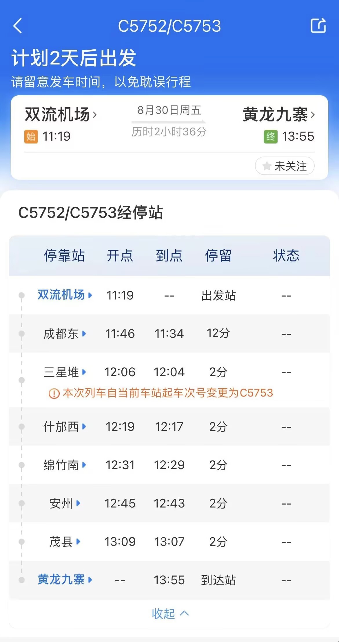 8月28日,記者從(cong) 12306網站時刻表看到,目前四川成都至青海西寧鐵路鎮江關(guan) 至黃勝關(guan) 段車次信息已可以查詢,最近的發車時間為(wei) 8月30日,成都至黃龍九寨動車用時在兩(liang) 小時左右,這也意味著成都到黃龍景區、九寨溝景區的車程將大大縮短。