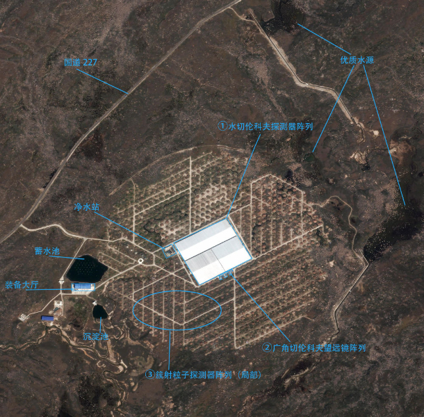 從(cong) 衛星影像示意圖上可以看到,“拉索”毗鄰國道,地勢整體(ti) 平坦,優(you) 質水源豐(feng) 富。得益於(yu) 世界屋脊的高海拔優(you) 勢和多項關(guan) 鍵核心技術的突破,“拉索”集合了三項“世界之最”:最靈敏的超高能伽馬射線探測裝置,最靈敏的甚高能伽馬射線源巡天普查望遠鏡,能量覆蓋範圍最寬的超高能宇宙線複合式立體(ti) 測量係統。自2021年“拉索”完成建設投入使用以來,成績斐然。