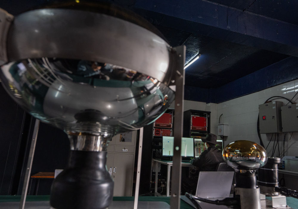 9月20日,“拉索”工作人員在一台廣角切倫(lun) 科夫望遠鏡上檢查成像部件。新華社記者 金立旺 攝