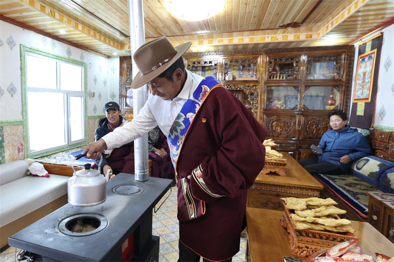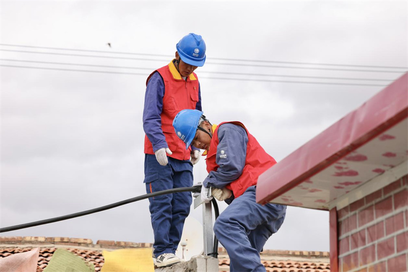 9月28日,在蘇裏35千伏輸變電工程投入運行前,國家電網天峻縣供電公司員工在牧民家檢查用電線路。李逸飛 攝