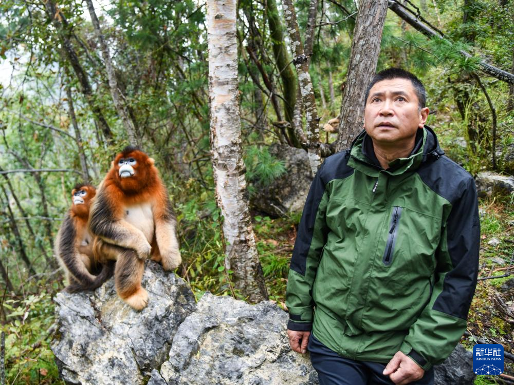 在位於(yu) 四川省阿壩藏族羌族自治州九寨溝縣境內(nei) 的四川白河國家級自然保護區裏,生活著約1700隻野生川金絲(si) 猴,它們(men) 在林中穿梭,快樂(le) 地棲息在這片青山綠水之中。這些川金絲(si) 猴的身後,是日夜守護著它們(men) 的巡護員們(men) 。今年56歲的保護區服務中心太平保護站川金絲(si) 猴研究中心監測隊隊長唐玉林就是其中的一員。