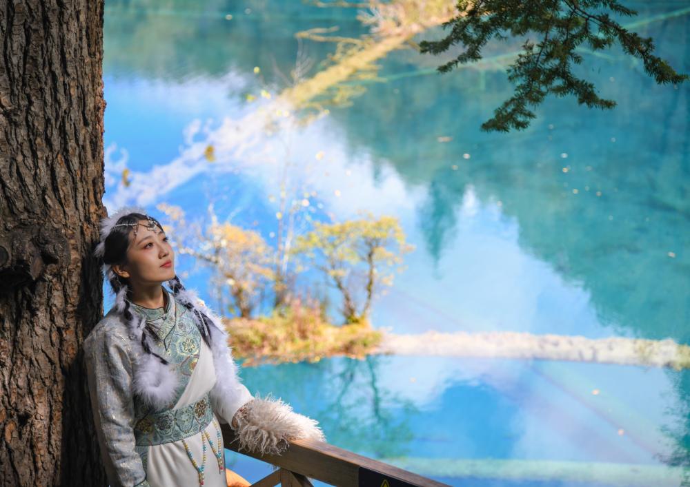 江蘇林女士的新婚蜜月之行便是來到九寨溝,她特意租了傳(chuan) 統藏族服飾、化上了特色妝容,站在五花海的棧道上,身後是碧藍湖水,身側(ce) 是林影婆娑。“在這麽(me) 美的景色之下穿上民族服裝,我想拍出來的照片一定很美!”