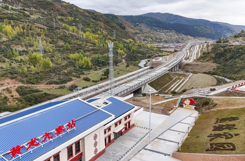 一列動車駛入川青鐵路黃龍九寨站。新華社記者 王曦 攝