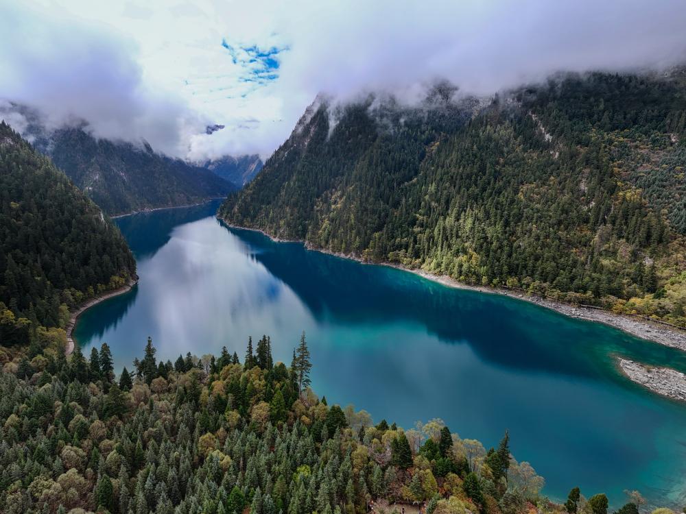 “羊峒番內(nei) ,海狹長數裏,水光浮翠,倒映林嵐。”在當地縣誌記錄中,九寨溝有數十裏之長的高原湖泊風光。