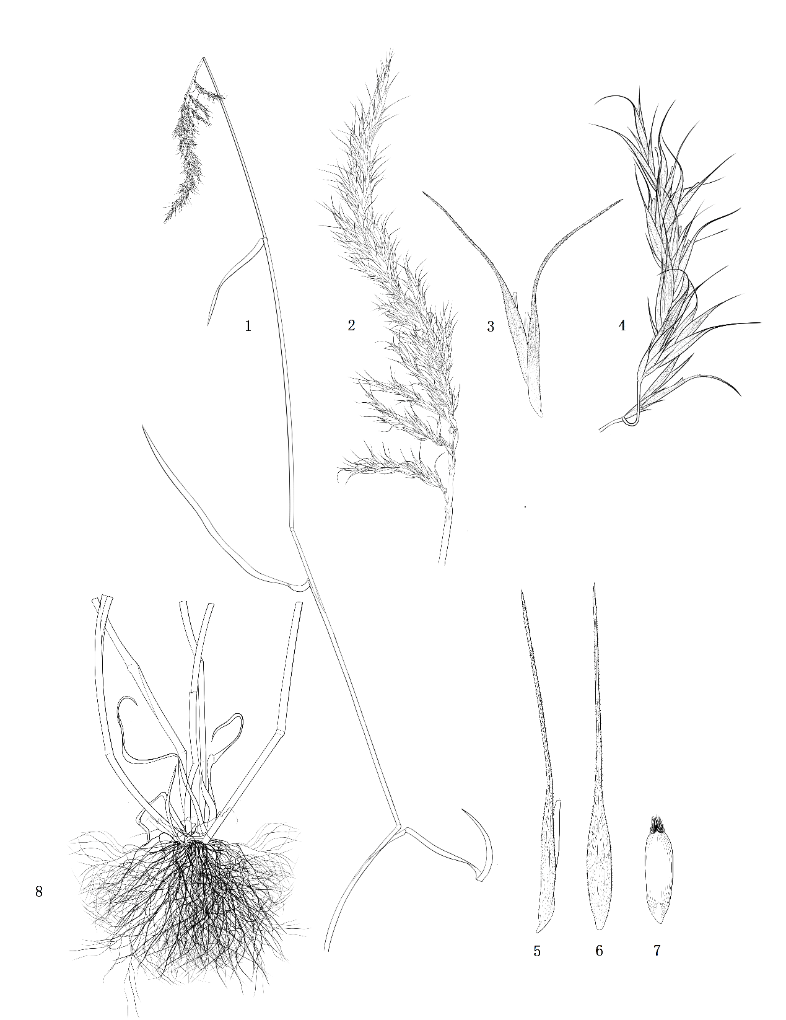 張永超介紹,多支披堿草因其複穗狀花序而與(yu) 同屬其他物種有明顯區分。傳(chuan) 統披堿草屬植物大多具有簡單的穗狀花序,而這一新物種的花序主軸基部延伸出3-6個(ge) 類似小穗的分枝,且分枝的長度從(cong) 頂部到底部逐漸增長。這種複合結構為(wei) 禾本科植物花序演化提供了新的視角。