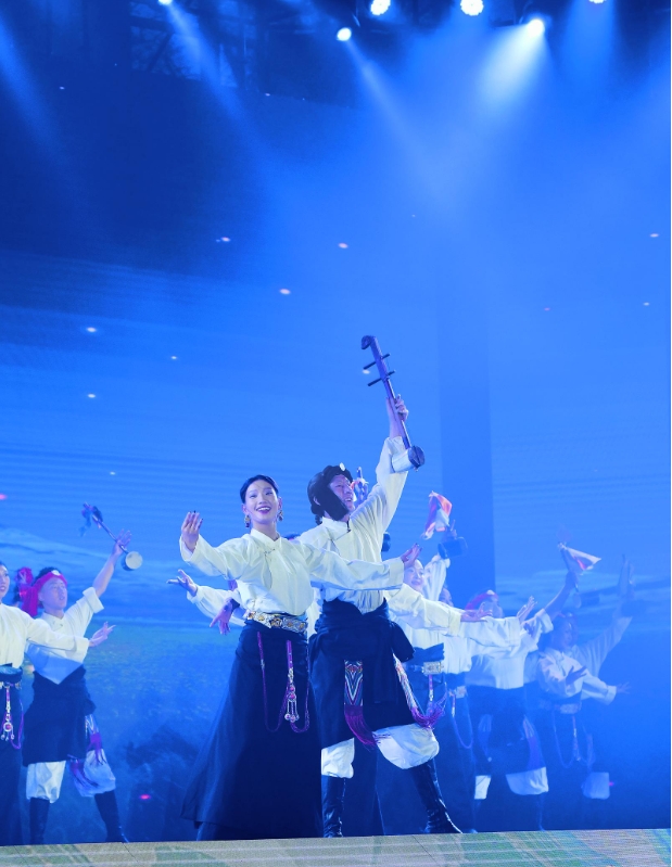 玉樹擁有豐(feng) 富多樣的非物質文化遺產(chan) ,於(yu) 2017年設立了國家級藏族文化(玉樹)生態保護實驗區,這一舉(ju) 措不僅(jin) 強化了對藏族文化的保護,也促進了當地文化的傳(chuan) 承與(yu) 發展。此次展演由開篇、第一章生命之源、第二章文化之魂、第三章五彩的三江源、尾聲五個(ge) 部分組成,玉樹州民族歌舞團精心挑選了玉樹伊舞、熱巴舞、藏族民歌等具有玉樹代表性的13個(ge) 節目進行了展示。