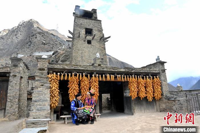 25日,桃坪羌寨內(nei) 的居民正在聊天。中新社記者 安源 攝