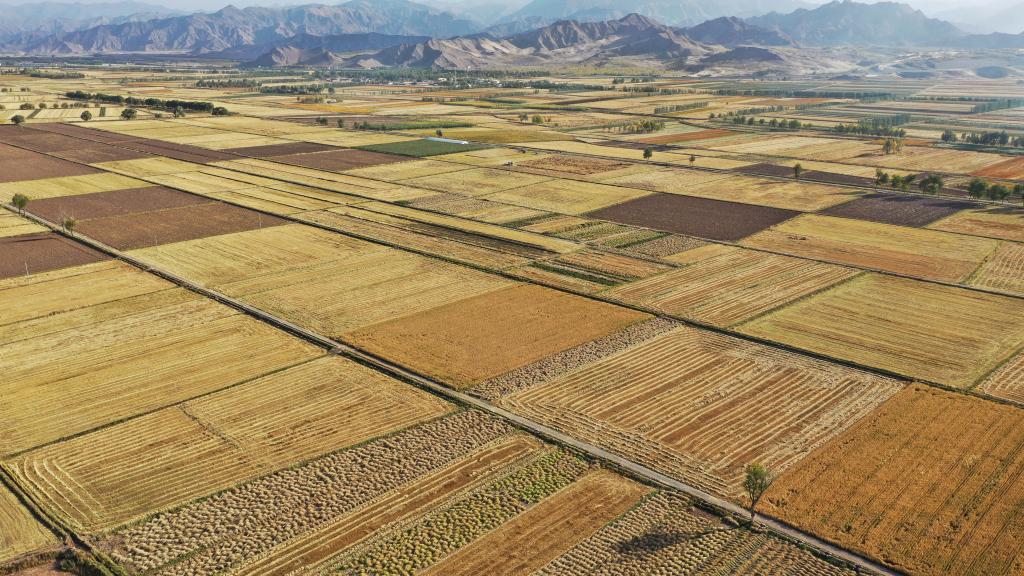 圖為(wei) 9月29日拍攝的香日德連綿的農(nong) 田。新華社發(潘彬彬攝)