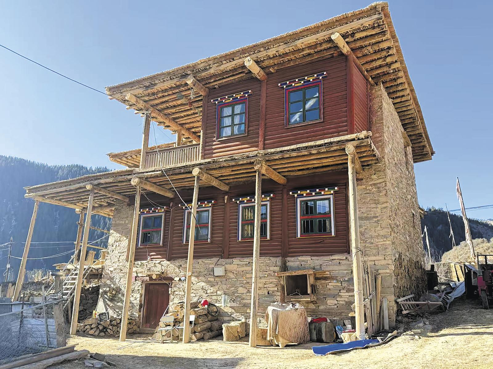 眼前是一座標準的藏式碉樓,整體(ti) 三層,高度近10米,外部由大小不一石片砌成,牆體(ti) 呈梯形,屋頂皆平。“我們(men) 這裏的碉樓大多為(wei) 二至三層,每一層都有不同的功能劃分。”蘭(lan) 聞折群說。