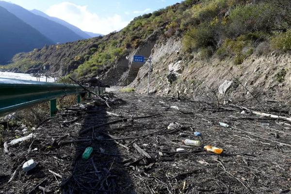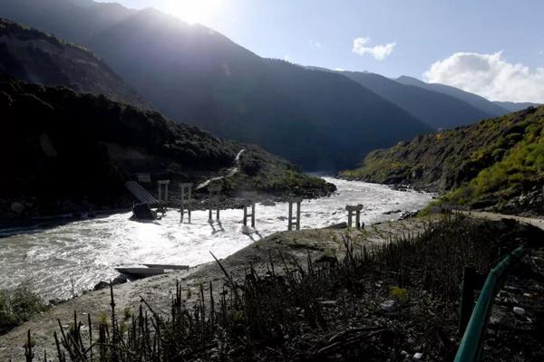 圖為(wei) 10月20日拍攝的被堰塞湖衝(chong) 毀的達林大橋。記者 潘多 攝