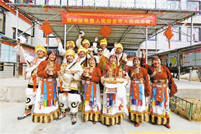 阿壩林卡社區居委會(hui) 老年文藝隊在表演節目後,集體(ti) 合影留念並向全區人民拜年。