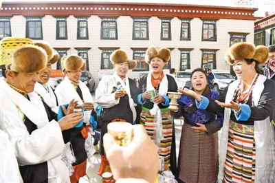今年的藏曆新年和農(nong) 曆春節“結伴”而至,西藏處處洋溢著濃濃的年味,各族幹部群眾(zhong) 載歌載舞、歡度佳節。