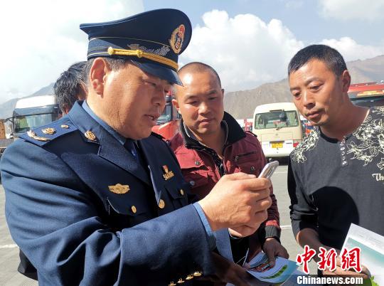 圖為(wei) 西藏自治區路政管理局工作人員向貨車司機講解辦理相關(guan) 手續流程。趙延 攝