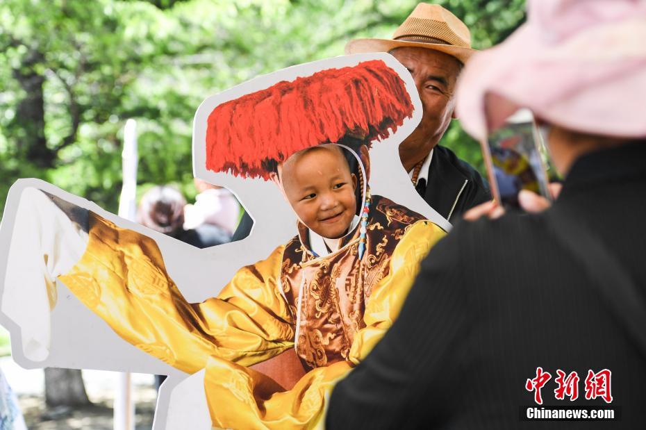 5月25日,2019年“藏戲演出季”第二場演出在西藏拉薩布達拉宮腳下的宗角祿康公園開演。據了解,2019年藏戲演出季將持續到今年的7月20日,每周六來自拉薩八縣區的優(you) 秀藏戲隊將相繼進行公益表演。圖為(wei) 當地兒(er) 童體(ti) 驗藏戲人物裝扮造型。中新社記者 何蓬磊 攝