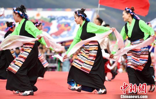 圖為(wei) 文藝演出中的西藏傳(chuan) 統歌舞表演。 趙朗 攝