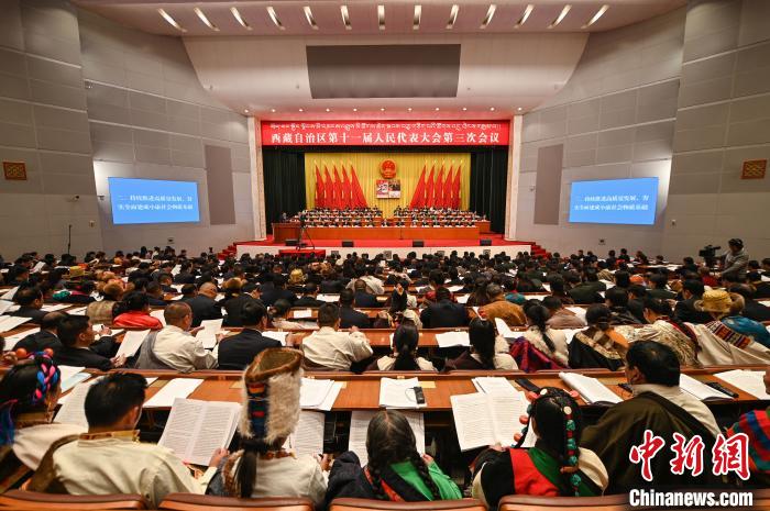 西藏自治區第十一屆人民代表大會(hui) 第三次會(hui) 議7日在拉薩召開,西藏自治區主席齊紮拉作政府工作報告。