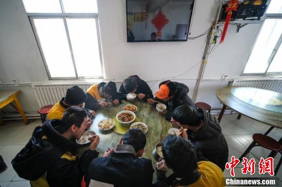 紮加藏布工區內(nei) ,工作人員正在就餐。
