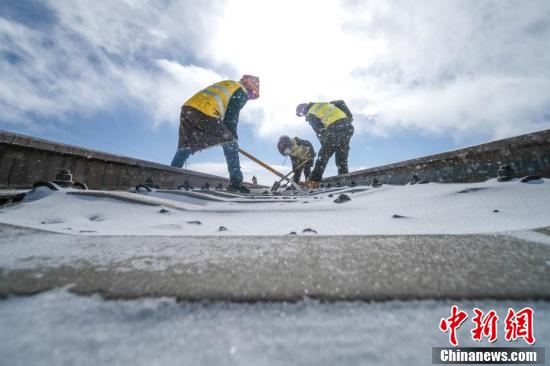 紮加藏布工區工作人員進行道心飛砟整治以及除雪作業(ye) 。