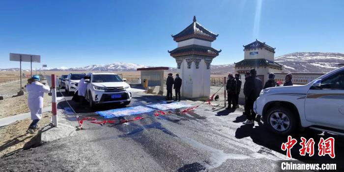 圖為(wei) 近日,聶拉木縣加大疫情防控力度,在全縣各個(ge) 出入口設卡,對過往車輛進行消毒作業(ye) 。 聶拉木縣委宣傳(chuan) 部 供圖 攝