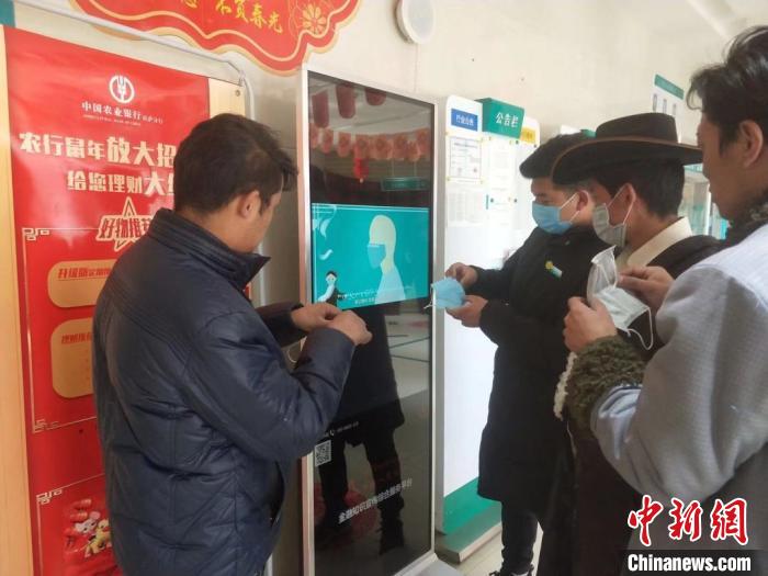 圖為(wei) 近日,農(nong) 行員工指導客戶正確使用口罩。 農(nong) 行西藏分行 供圖 攝