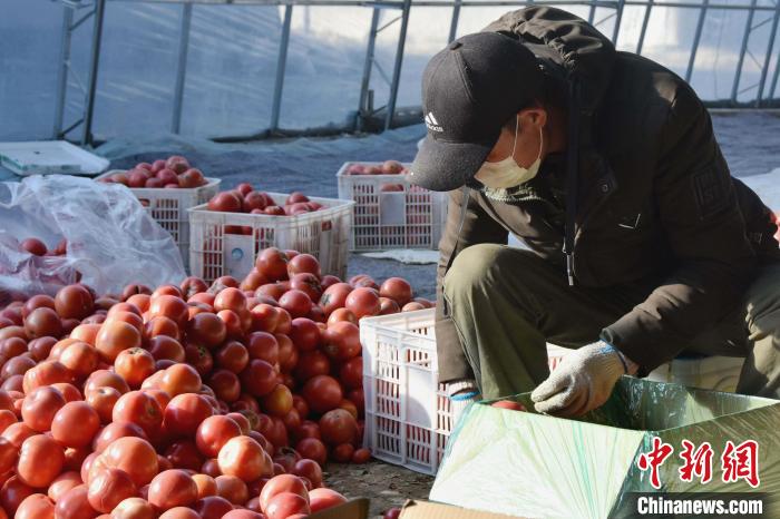 西藏白朗縣農(nong) 牧民將西紅柿裝箱,準備發貨。白朗縣 供圖