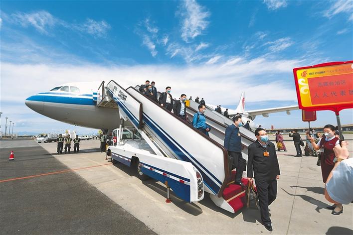 20日13時許,由拉薩飛往北京的CA4126航班平穩降落在首都國際機場,出席十三屆全國人大三次會(hui) 議和全國政協十三屆三次會(hui) 議的西藏全國人大代表、住藏全國政協委員,帶著全區各族人民的重托和期待,順利抵京。