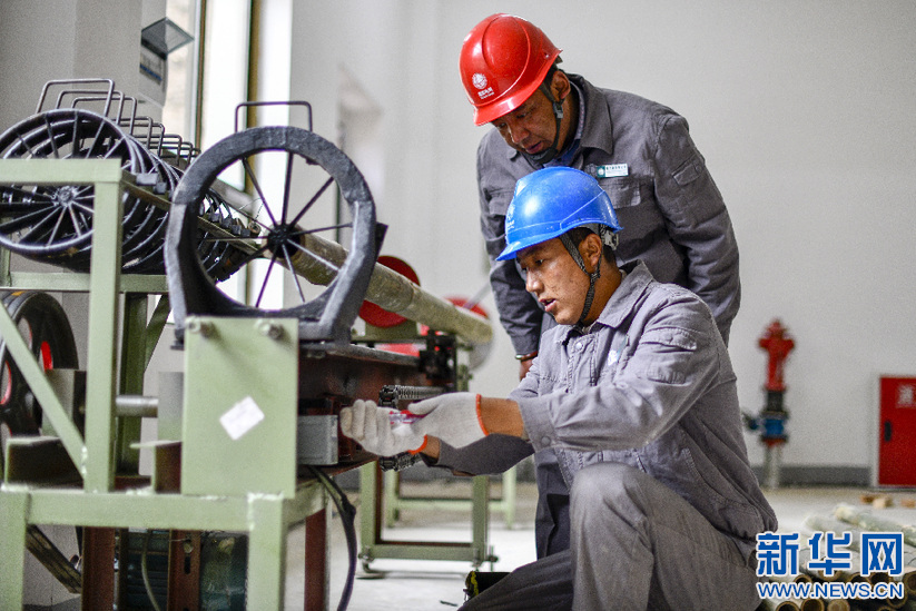 在西藏山南市隆子縣玉麥鄉(xiang) ,供電服務站工作人員在玉麥鄉(xiang) 竹器廠檢查機器設備(5月27日攝)。新華社記者 王炳坤 攝