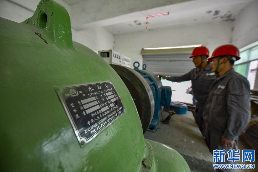 在西藏山南市隆子縣玉麥鄉(xiang) ,工作人員在查看水電站的水輪機(5月27日攝)。新華社記者 王炳坤 攝