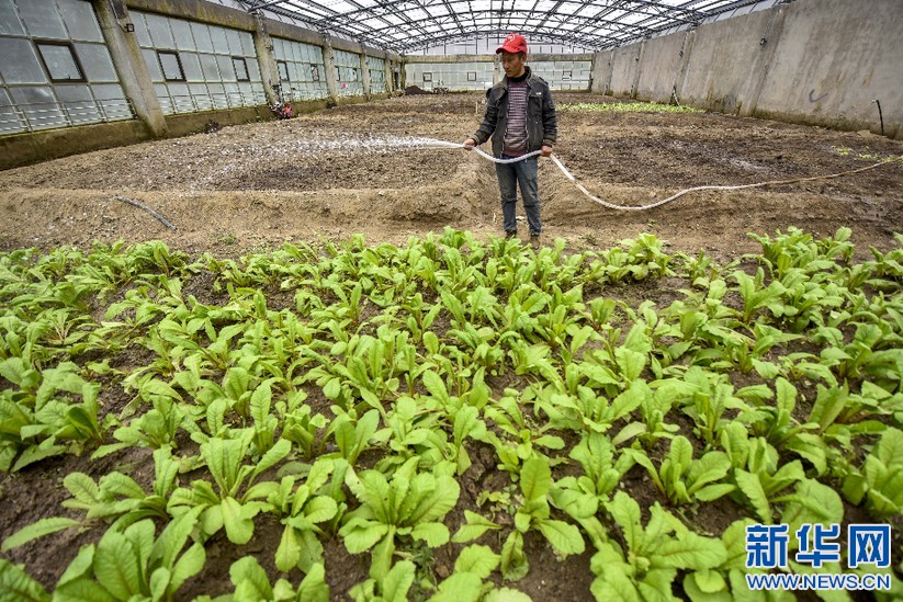在西藏山南市隆子縣玉麥鄉(xiang) ,一名村民在溫室大棚內(nei) 給蔬菜澆水(5月27日攝)。新華社記者 王炳坤 攝