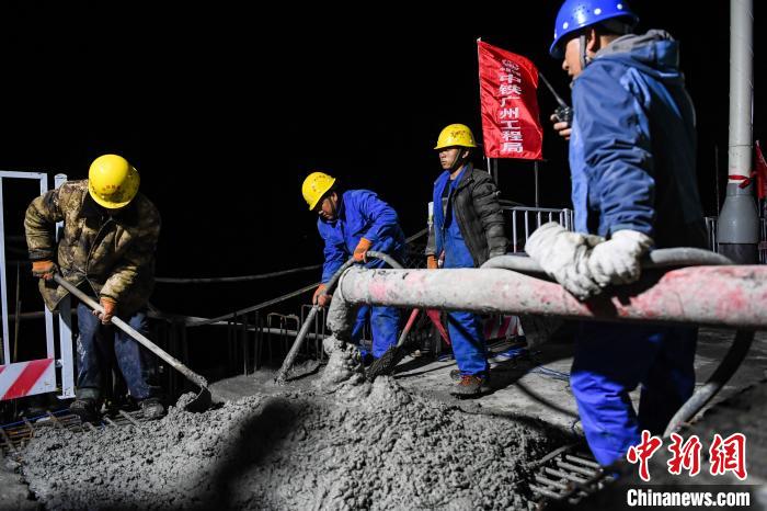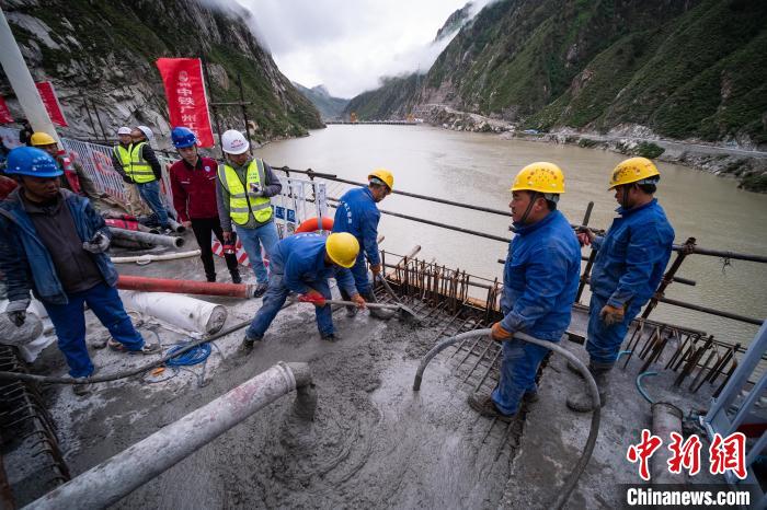 圖為(wei) 6月20日,中鐵廣州工程局工人在藏木特大橋進行混凝土澆築作業(ye) 。何蓬磊 攝