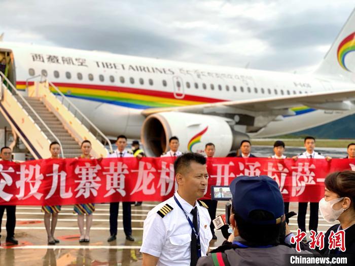 圖為(wei) 25日,西藏航空有限公司(簡稱“西藏航空”)西藏拉薩-甘肅蘭(lan) 州-四川九寨溝航線首航航班機長許琰(前排左一)完成首飛抵達九寨黃龍機場。西藏航空 供圖