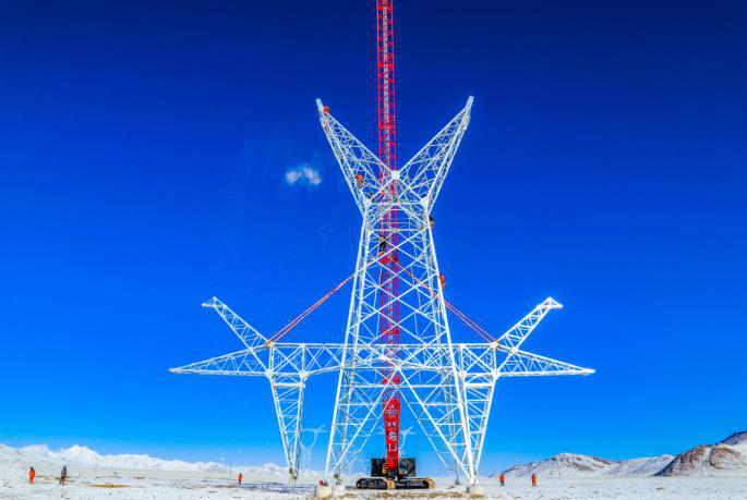 阿裏聯網工程海拔最高500千伏輸電鐵塔組立完成