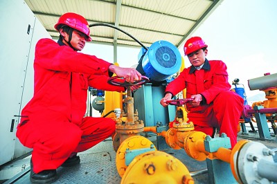 位於(yu) 拉薩經開區的昆侖(lun) 天然氣廠的工人在操作天然氣設備。資料圖片