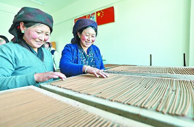 直貢藏醫是自治區級非物質文化遺產(chan) 。圖為(wei) 直貢流派藏藥材保護中心工作人員正在晾曬藏香。資料圖片