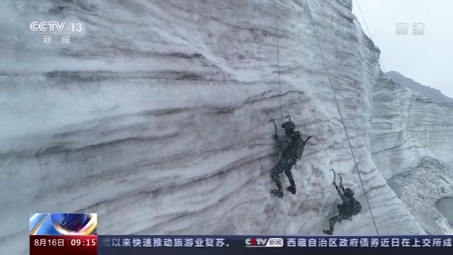 偵(zhen) 察兵是一把尖刀,冰川就是他們(men) 的磨刀石。從(cong) 4500米的寬穀區到5500多米的冰川地帶,攀升的不僅(jin) 是海拔,更是對體(ti) 能和技能的極限挑戰。隊伍繼續前行,一道高40多米,近乎垂直的冰壁,成了他們(men) 的“攔路虎”。先鋒攀登率先利用專(zhuan) 業(ye) 工具,建立保護站,掛好保護繩,隊員依次攀登而上。