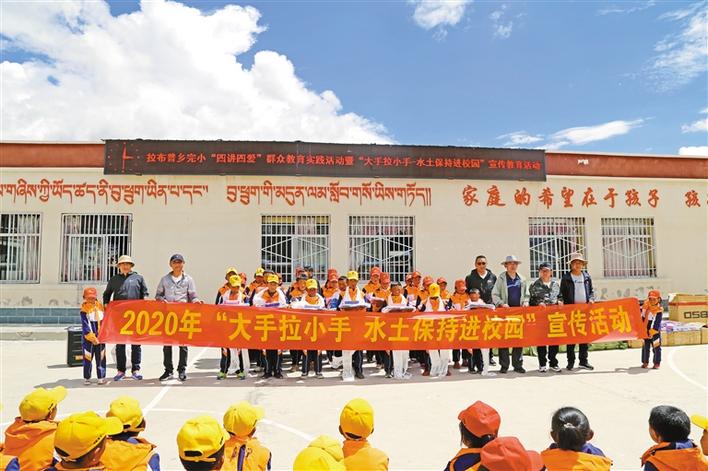 圖為(wei) 西藏自治區水土保持局組織開展2020年“大手拉小手 水土保持進校園”宣傳(chuan) 活動現場。