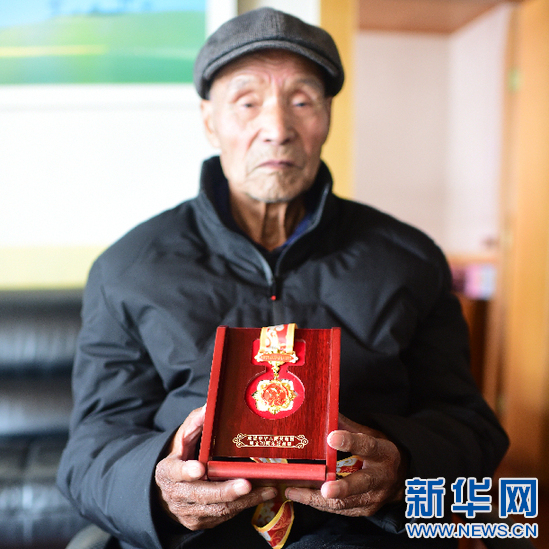 12月31日,吳多吉老人和他的“慶祝中華人民共和國成立70周年”紀念章。新華網 張宸 攝
