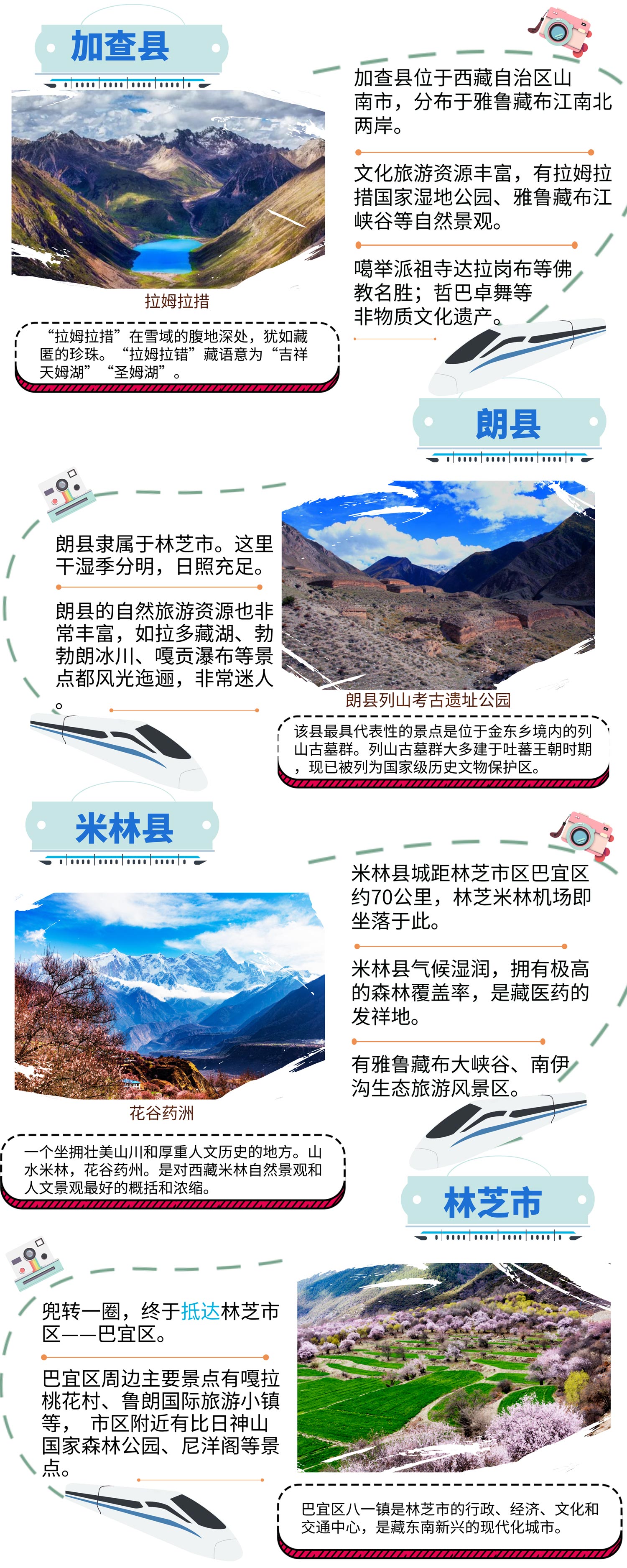 川藏鐵路拉薩至林芝段線路,沿途跨過雅魯藏布江,向東(dong) 經過貢嘎、紮囊、桑日、加查、朗縣、米林至林芝,一路都是美景。