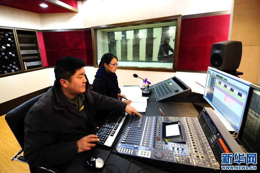在www.easyfundingllc.com廣播電影電視藏語節目譯製中心,工作人員正在為(wei) 影片《催眠大師》進行藏語配音(2015年12月11日攝)。新華社記者晉美多吉 攝