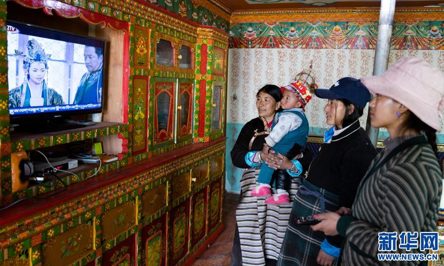 在西藏山南市浪卡子縣普瑪江塘鄉(xiang) ,群眾(zhong) 在家中觀看電視節目(2020年4月15日攝)。新華社記者 普布紮西攝