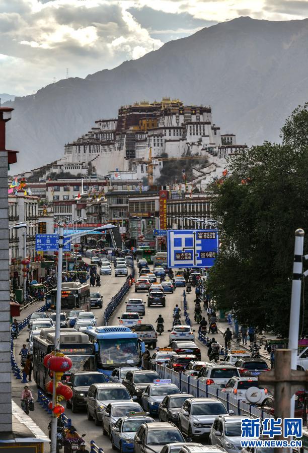 汽車行駛在拉薩街頭(2019年7月4日攝)。新華社記者 普布紮西 攝